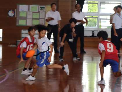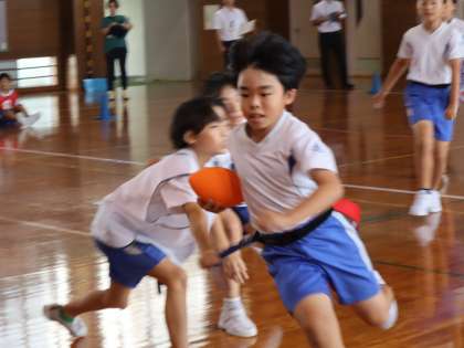 4年生 体育の学習1 公開日 2024/09/30 更新日 2024/09/30 4年生 タグラグビーの学習をしました。今日は、研修会でたくさんの方が見に来られましたが、子供たちはいつも通りがんばりました。 トライ目指してまっしぐら!な子供たちの様子です。