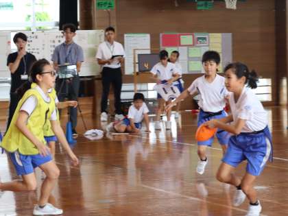 4年 体育の学習2 公開日 2024/09/30 更新日 2024/09/30 4年生 「カメレオン作戦」「連続射撃作戦」「いのししミッション」等々、様々な作戦を考え、ゲームに生かしています。みんな真剣に取り組んでいます。