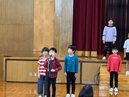 2・3年生 連合音楽会に向けて校内で発表しました 公開日 2024/10/08 更新日 2024/10/08 3年生 いよいよ金曜日の本番に向けて、草島小学校で音楽会の曲を披露しました。 たくさんの人の前で歌うことに緊張しながら、自分たちが今まで頑張ってきた曲を楽しみながら歌っている子供たちでした。