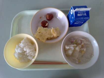 10月15日の給食 公開日 2024/10/15 更新日 2024/10/15 メール用カテゴリ 今日の給食は、 ごはん ぎゅうにゅう ミートボール チーズおさつ とうにゅうやさいスープ です。 今日もおいしくいただきました。