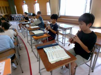 4年生 音楽科 始まりの歌 オーラリー 公開日 2024/10/18 更新日 2024/10/18 4年生 音楽の時間に、歌とリコーダーの学習をしました。表情や姿勢に気をつけながら練習することができました。