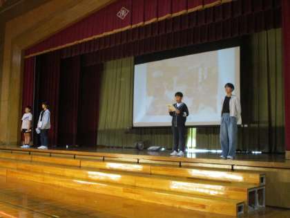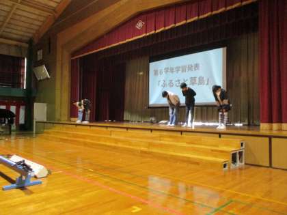 6年生 学習発表会に向けて 公開日 2024/10/24 更新日 2024/10/24 6年生 土曜日の学習発表会に向けた準備が進んでいます。本番では、堂々と台詞を述べることで地域の方々、保護者の皆様、下級生に自分たちの願いや思いをしっかりと伝えようと考えています。がんばろうとする子供たちをどうぞお楽しみにして下さい。