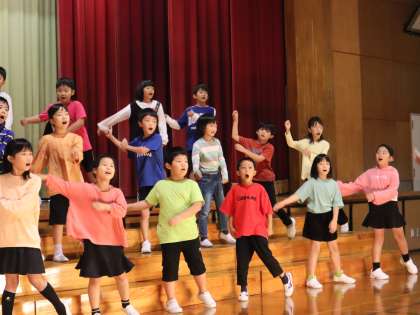 2年生 公開日 2024/10/26 更新日 2024/10/26 2年生 2年生は3年生と一緒に150周年記念学習発表会で、合奏と歌を発表しました。2拍子のマーチに合わせて行進したり、3拍子のリズムに合わせてバンブーダンスをしたりしました。3年生と合唱では、歌声と動きを合わせ,身体全体でで音楽を表現しました。