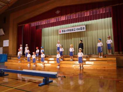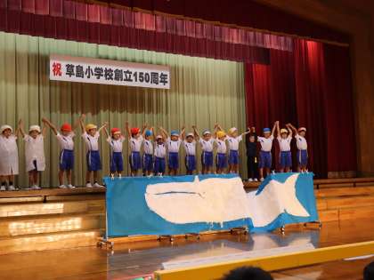 学習発表会 1年生 音読劇「くじらぐも」 公開日 2024/10/26 更新日 2024/10/26 1年生 小学校で初めての学習発表会でした。途中ハプニングがありましたが、最後まで発表することができました。終わった後、やりきった笑顔がいっぱいの子供たちでした。
