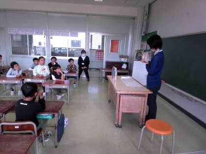 2年生 富山市立図書館四方分館学級訪問 公開日 2024/11/04 更新日 2024/11/04 2年生 去年の冬、学級に読み聞かせをしてくださった富山市立図書館四方分館の方が、今年も訪問してくださいました。ブックトーク、読み聞かせ、本の紹介をしていただきました。今回のテーマは「おいしい秋」。きのこやさつまいも、くり等、秋の味覚をテーマにした本がたくさん紹介され、本の世界に引き込まれていきました。