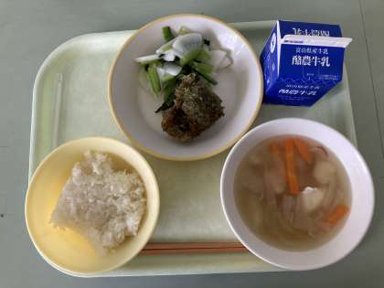 11月5日の給食 公開日 2024/11/05 更新日 2024/11/05 メール用カテゴリ 今日の給食は ごはん ぎゅうにゅう ぶたにくのいそべあげ かぶのサラダ ポテトスープ です。 今日もおいしくいただきました。