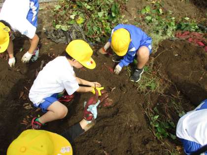 1年生 さつまいもほり 公開日 2024/11/06 更新日 2024/11/06 1年生 畑で育てたさつまいもを掘りました。今年の夏は暑かったので、どれだけのさつまいもができるか心配でしたが、たくさんとれました。みんなで分けて「重たいな」と持ち帰りました。