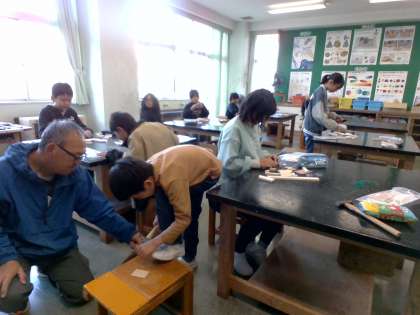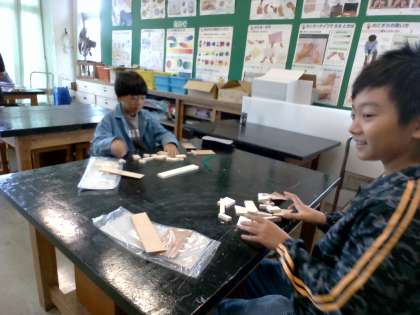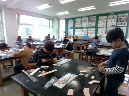 図工の学習では、のこぎりと金槌を使って、制作しています。