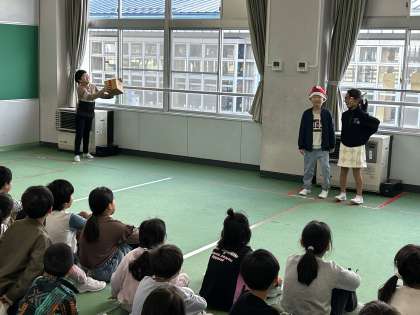 下学年 パワーアップ!朝の会 公開日 2024/11/14 更新日 2024/11/14 3年生 今回の下学年朝の会は、3年生が劇をしながらその中に今月の歌を歌ったりあいさつをしたりしました。 みんなのクリスマスプレゼントを狙う悪者を追い払おうとみんなで大きな声で歌いました。 ふれあいタイムでは、自分たちの考えたNEWじゃんけん列車をしました。ルールだけでなく、ピアノ演奏も自分たちで分担して行うなど、工夫して行うことができました。