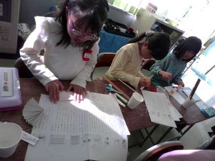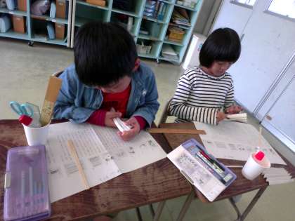 2年生 国語科「紙コップ花火の作り方」の学習 公開日 2024/11/14 更新日 2024/11/14 2年生 おもちゃの作り方を説明した文章を読んで、紙コップ花火をつくりました。手本の文章を読み、おもちゃを作るときに役立った情報に線を引くことで、後で自分が説明する文章を書くときの参考にします。写真と説明の文章をつなぎながら詳しく読みました。