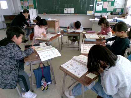 国語科では、生活科で作った「おもちゃ」の作り方を説明する文章を書いています。