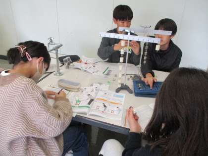 6年生 理科「てこのきまりとはたらき」 公開日 2024/11/27 更新日 2024/11/27 6年生 子供たちは「てこ」について実験を進めています。実験用てこが水平に釣り合うときのきまりを、支点からの距離に着目して調べていました。