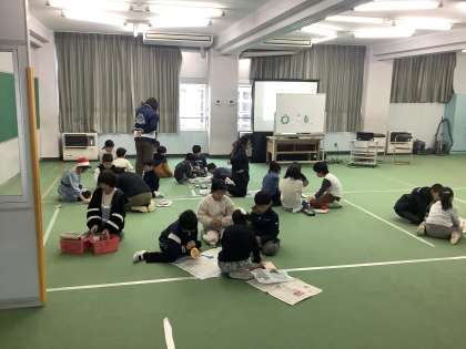 ふれあいタイムでは、その材料をもとに班で協力して飾り作りをしました。