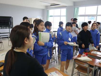 今日は校内研修として、6年生の外国語科の学習を各担任が参観しました。子供たちは、友達とテンポよく受け答えていました。