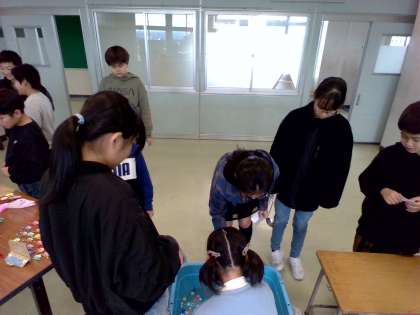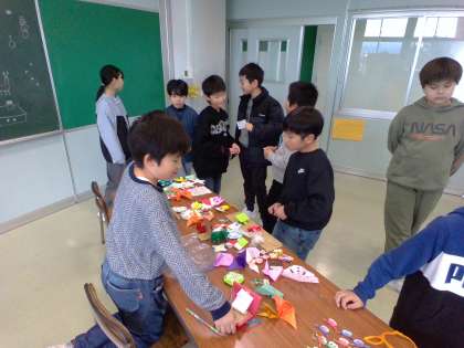 クリスマス祭りに向けて作業を進めています。今日は、実際に遊んでみました。明日は、5、6年生を招待をし、よりよい祭りになるように意見をもらって活動に活かしていきます。