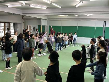 1年生が分かりやすいように桃太郎の劇を入れたり、音のクイズでふれあいをしたりして楽しみました。