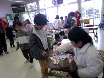 一生懸命に作ったおもちゃで遊んでもらうのはとても嬉しいです。遊び方やこつを丁寧に教える様子から、上級生らしさが感じられました。