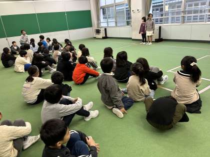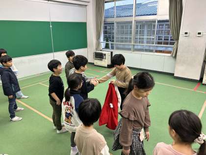 下学年 今年最後の下学年朝の会! 公開日 2024/12/18 更新日 2024/12/18 3年生 今年最後の下学年朝の会では1年生と一緒になり、会を進めました。 3年生が中心となり劇や進行を考えました。 ふれあいタイムでは、バクダンゲームをして、音楽に合わせてドキドキ、ハラハラしていました。 3学期の朝の会も楽しみです。