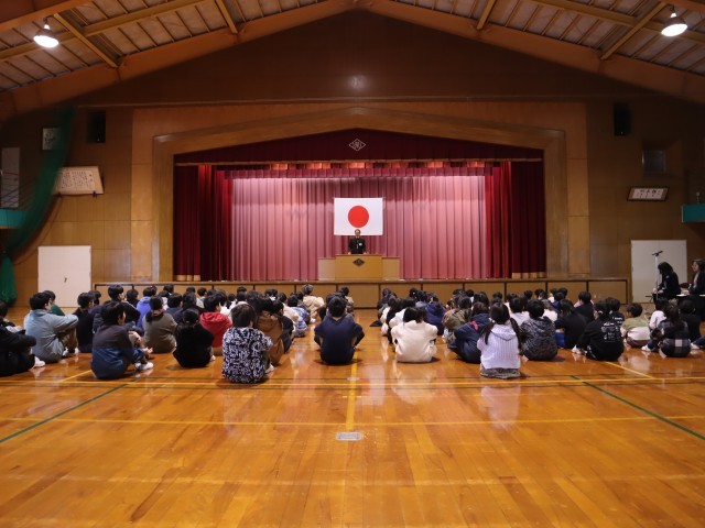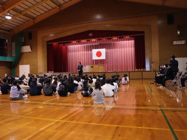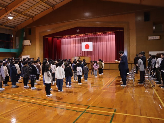 第3学期始業式があり、校長先生からは、干支にちなんだ話がありました。「ヘビは脱皮をして大きく「成長」「進化」し、「復活」します。みなさんも自分を振り返り、いいところはもっと伸ばし、納得のできないところはよりよくなるよう自分自身を見つめ努力していける3学期にしてほしい」などのメッセージを送られました。子供たちは頷いたりしながらこれまでの自分今の自分と照らし合わせ真剣に聞いていました。短い3学期ですが、実のある3学期にしていきましょう。