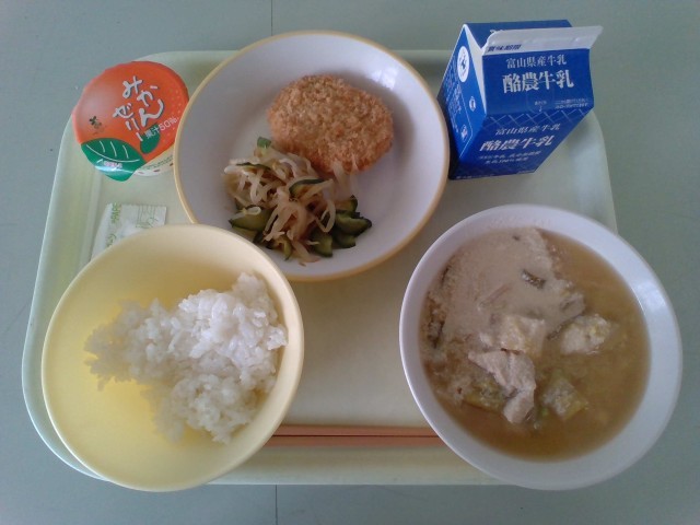 いつも以上に、調理員さん等、いろいろな方々に感謝して給食をいただきます。