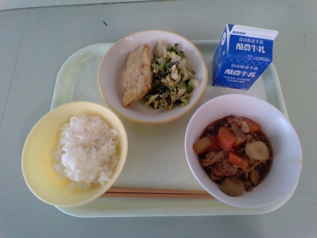1月30日の給食 公開日 2025/01/30 更新日 2025/01/30 給食 今日の給食は、ごはんぎゅうにゅうホキのてんぷらあおなのごまあえにみそ です。給食週間4日目。今日は「社会」をテーマにした給食でした。徳川家康の好物や、愛知県の食に欠かせない「赤味噌」を使った郷土料理が取り入れられていました。今日もおいしくいただきました。 給食