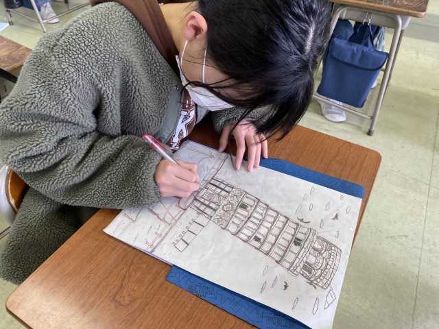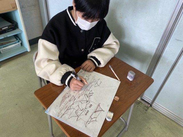 5年生 図工「版画で世界旅行」 公開日 2025/02/04 更新日 2025/02/03 5年生 5年生は図工の時間に「版画」に取り組んでいます。今日は版画版に下絵を描きました。次回は彫刻刀を使い、本格的に彫っていきたいと思います。 5年生
