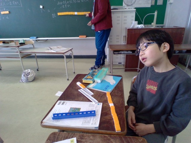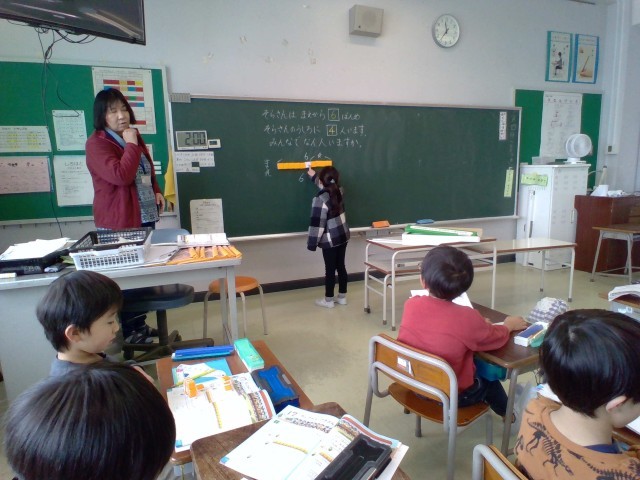 1年生 算数の学習 公開日 2025/02/04 更新日 2025/02/04 1年生 算数ブロックを使って学習しています。何番目の部分をブロックをひっくり返して色を変え、その前後の数を数えていました。先生問題をしていて、「これたしざんでできるよ!」「この問題ひきざんだ!」とブロックで確認しながら問題に答えていました。 1年生
