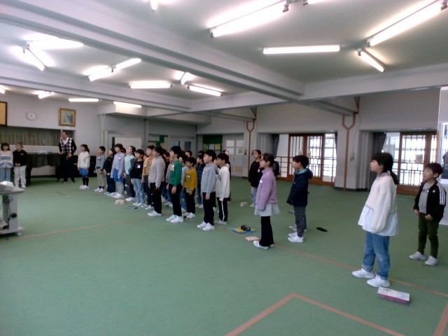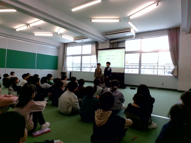 毎週水曜日に行っている「下学年朝の会」。いつもは、3年生がしてくれる担当を、2年生が行いました。