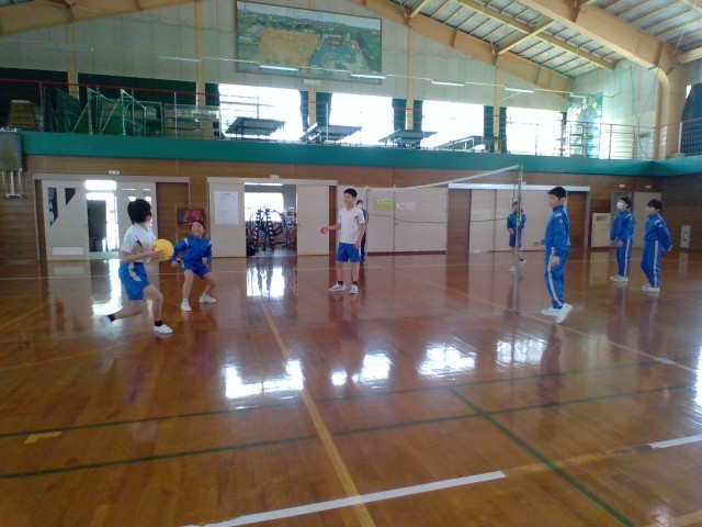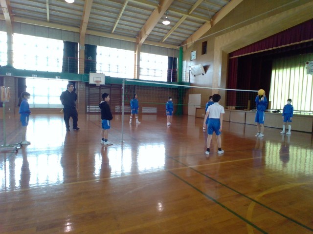 5年生 体育の学習 公開日 2025/02/27 更新日 2025/02/27 5年生 バレーボールをしています。3回で相手側に返す練習をしています。どうやったら返しやすいか、または相手が取りにくいかを考えながら立つ位置やボールの投げ方を探っていました。 5年生