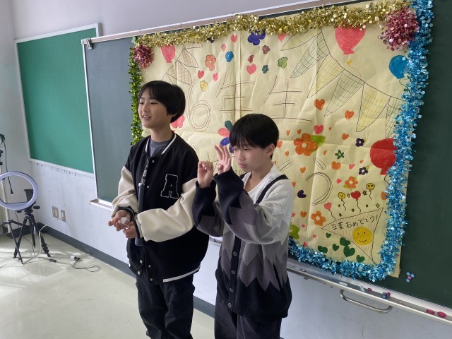 5年生 卒業を祝う週間がスタート!!! 公開日 2025/02/26 更新日 2025/02/26 5年生 今週から卒業を祝う週間がスタートしています。昼の放送では、6年生のみなさんが好きな給食のランキングを発表したり、小学校生活の思い出や中学校への意気込みをインタビューしたりしています。草島小学校を引っ張ってきてくれた6年生のみなさんに、「ありがとう」の気持ちと、「中学校でもがんばってね」の気持ちをしっかり伝えられるよう、全力で取り組みます! 5年生