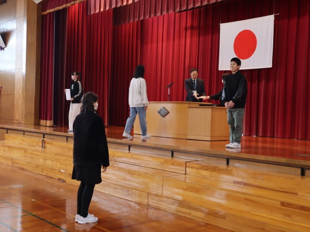 卒業式を前に修了式を行いました。明日は、卒業式。最後の1日を大切に過ごします。