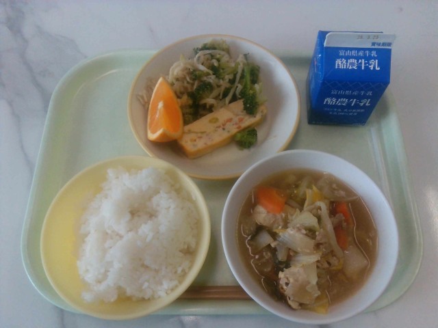 3月19日の給食 公開日 2025/03/19 更新日 2025/03/19 給食 今日の給食は、ごはんちぐさやきブロッコリーのごまだれかんこくふうすきやきぎゅうにゅうきよみオレンジです。美味しくいただきました。 給食