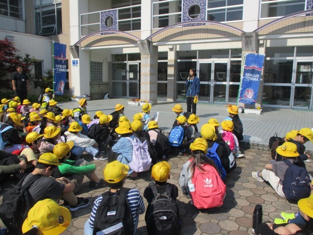 全校みんなでなかよしハイキングに出かけました。縦割り班のリーダーを中心に、いろいろなコースを通り、目的地である「北陸電力総合運動公園」を目指しました。途中、校区内にある公園で班ごとにレクレーションを楽しんだり、持ってきたおやつを食べたりして、班の仲を深めました。その後、北陸総合運動公園に移動し、カターレ富山の練習の様子を見学しました。笑顔がたくさん見られたハイキングになりました。
