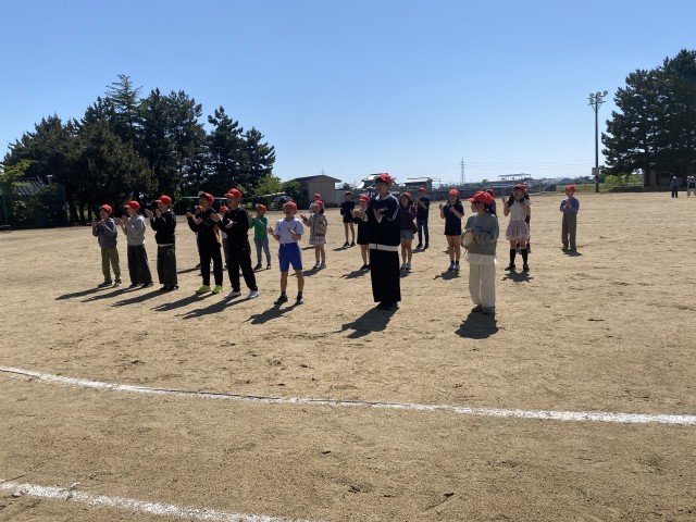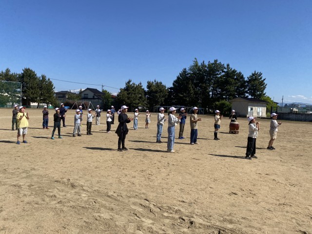 4・5・6年生 応援練習 in グラウンド 公開日 2025/05/12 更新日 2025/05/09 6年生 4・5・6年生は合同で応援練習に取り組んでいます。はっきりと大きな声でエールの練習をしたり、応援歌の振り付けを確認したりするなど、真剣に活動する姿が見られます。 6年生