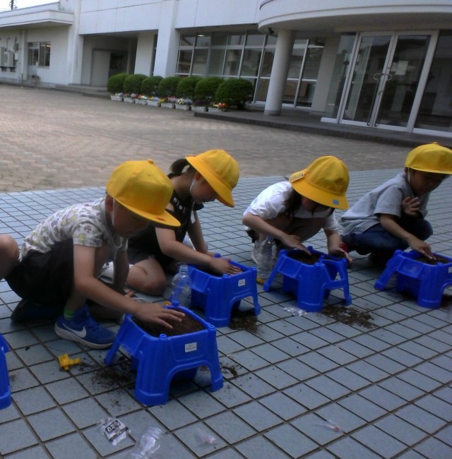 アサガオの種を植えました。小さなタネをそっと土にまき、水をあげながら、「どんな花が咲くかな?」とワクワクしている様子でした。