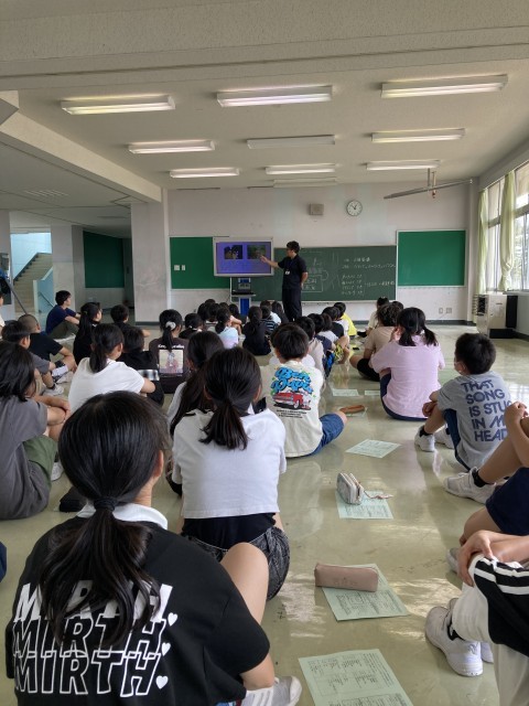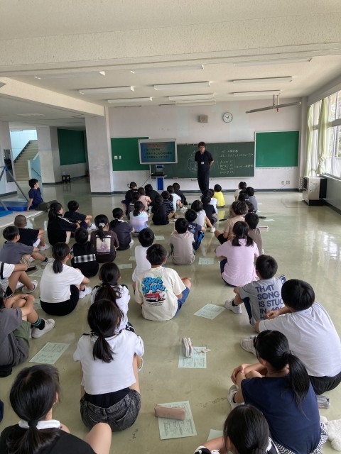 運動会が終わった後に、大きな行事として宿泊学習があります。4、5、6年生で集まり、宿泊学習の当日の動きや持ち物について写真を見ながら説明を聞きました。子供たちはどんな宿泊学習になるのかわくわくしている様子でした。