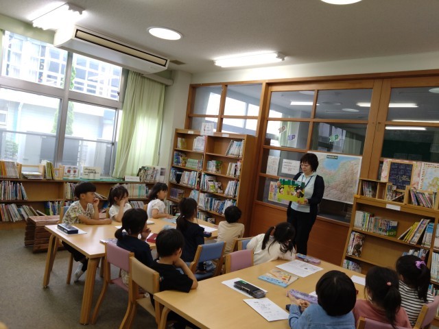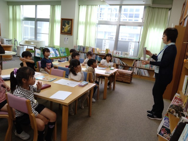 今日の5限は、図書館司書の先生に紙芝居を読んでいただいたり、いろいろな本を読んだりしました。