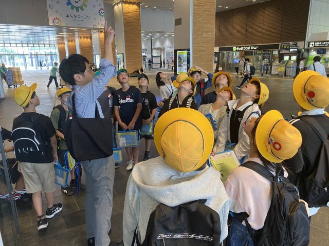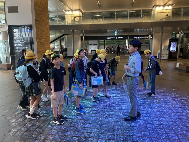 6年生 校外学習(その1) 公開日 2025/06/11 更新日 2025/06/10 6年生 6年生は社会科の学習で「富山型コンパクトなまちづくり」について学習しており、その実態を調査するために校外学習へ行きました。子供たちはフィーダーバスとライトレールを乗り継いで富山駅まで行き、駅構内で交通政策課の方から話を聞いたり、班ごとに市内電車に乗り南富山駅や大学前まで行ったりしました。 6年生