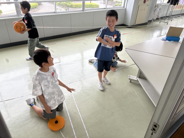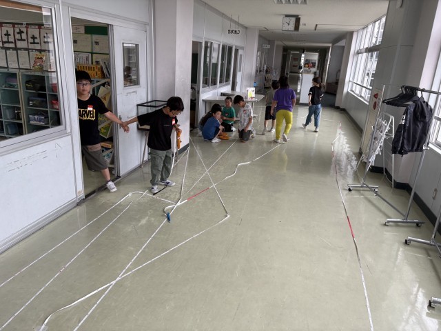 普段あまり測らない、歩いた「道のり」や2年生教室までの「距離」など測りました。