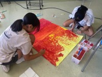 石川県観光物産館へ移動し、卒業制作に取り組みました。ガラスのコップに「砂彫り」...
