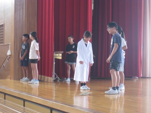 健康委員会が7月16日(水)に行われる「歯と口の集会」のリハーサルをしていました。分かりやすく伝えようとたくさん工夫をしていました。
