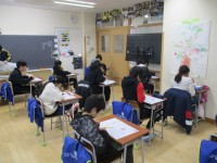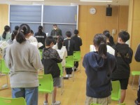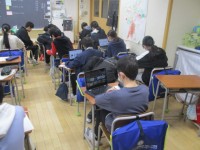 6年生の3時間目は、外国語科の学習でした。「すし」や「ハンバーガー」等、たべものについて英語で話していました。