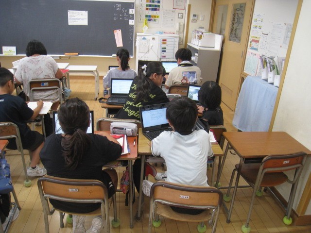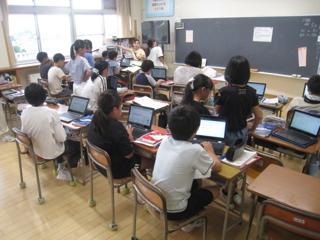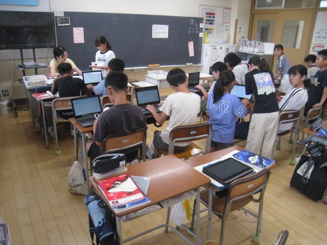 5年1組の1時間目は、国語科の学習でした。友達の報告書を読んでアドバイスを送っていました。