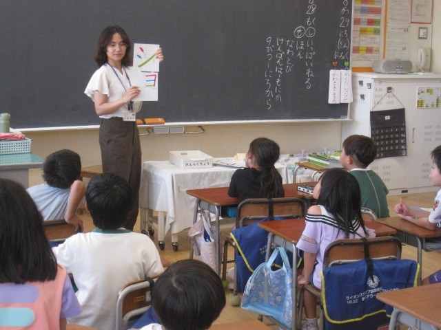 1年生の5時間目は、国語科の学習でした。「シャ」「シュ」「ショ」のカタカナの練習をしていました。