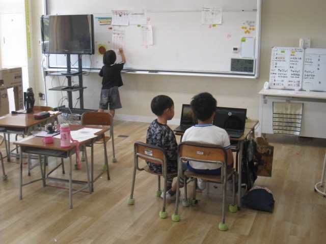 9月1日(月) 1・2・5年生 それぞれの活動を… 公開日 2025/09/01 更新日 2025/09/01 つばめ野級から つばめ野級2組の3時間目は、クロームブックやホワイトボードを使って、それぞれの活動を進めていました。