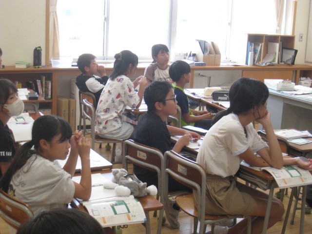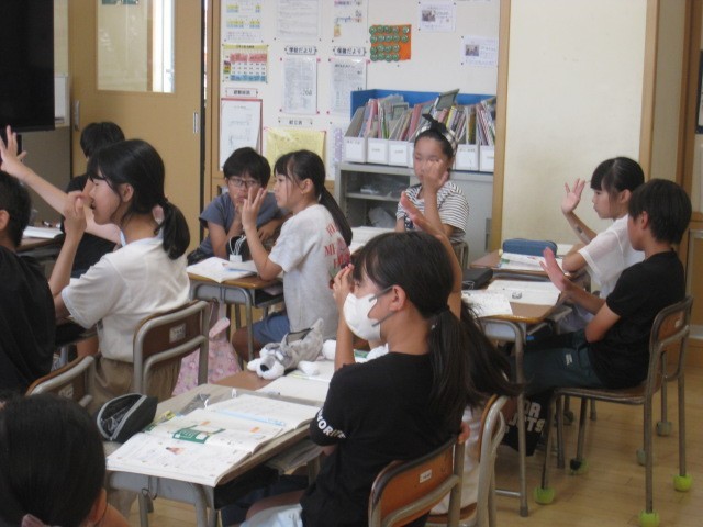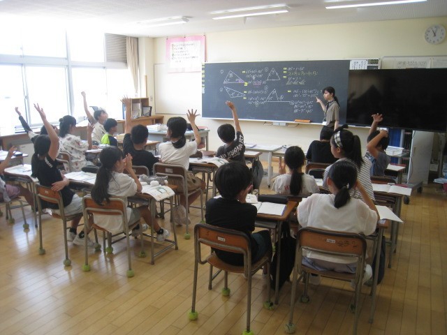 5年2組の3時間目は、算数科の学習でした。三角形の和が180度になることを使って、いろいろな問題を考えていました。