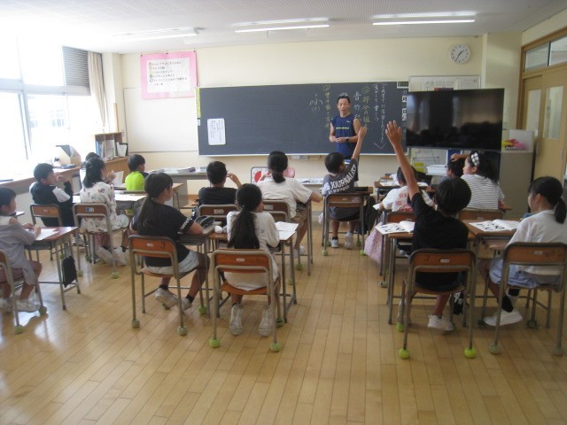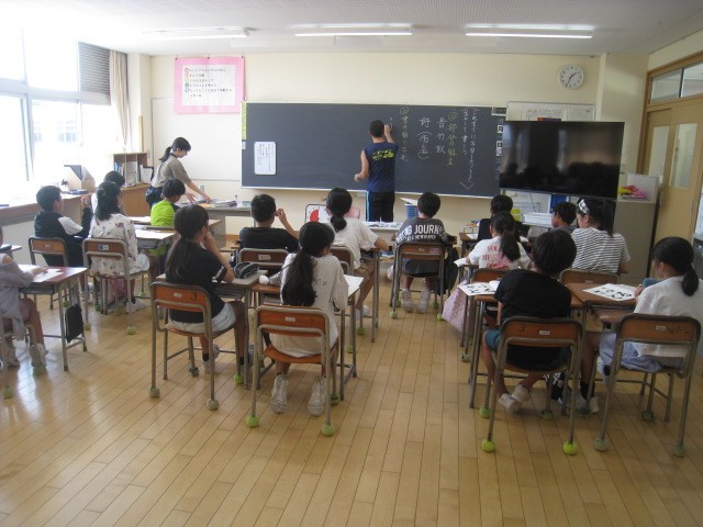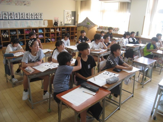 5年2組の5時間目は、書写の学習でした。竹取物語を書こうとしていました。