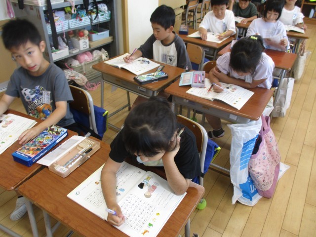1時間目の国語科の時間に、たくさんひらがなが書かれた中からことばを見付けました。