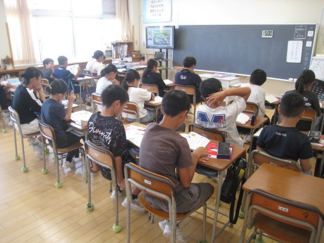 5年1組の1時間目は、国語科の学習でした。「どちらを選ぶか」について話し合っていました。
