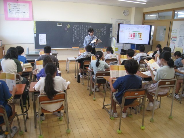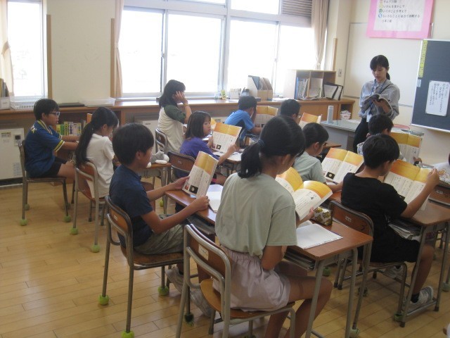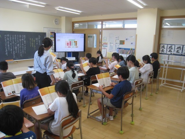 5年2組の1時間目は、国語科の学習でした。「秋の夕」という詩について考えていました。